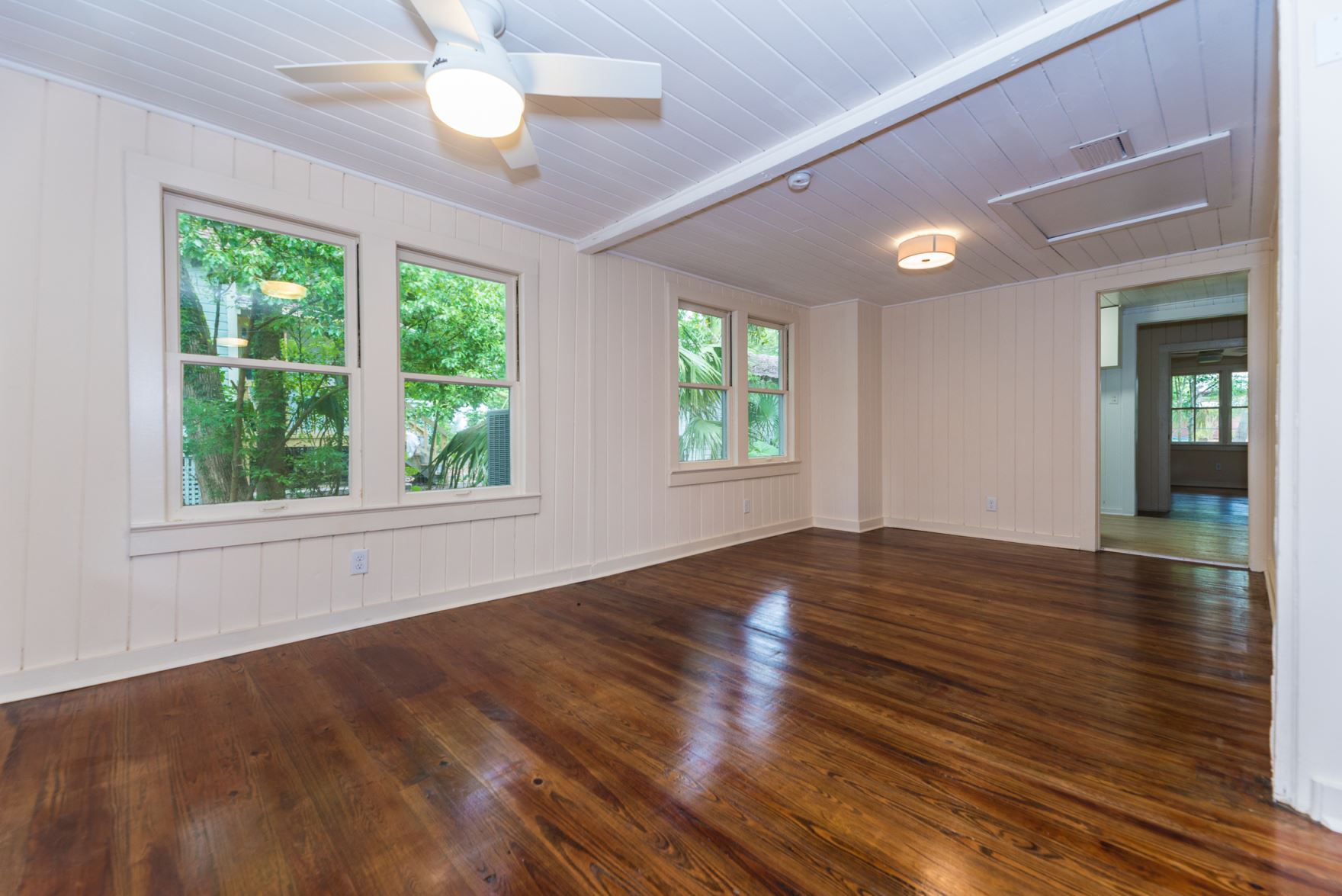 Tucked off the street in the middle of a 162′ deep lot surrounded by mature trees, this spring green cottage lives larger than it looks. Diffused natural light illuminates the 980SF interior making the wood floors gleam in the sunshine. A 24′ wide covered porch overlooks the shady front yard and is ready for Adirondack chairs and rockers for lazy afternoons. Step inside and the living/dining room opens up in front of you with a cozy alcove on the east side.