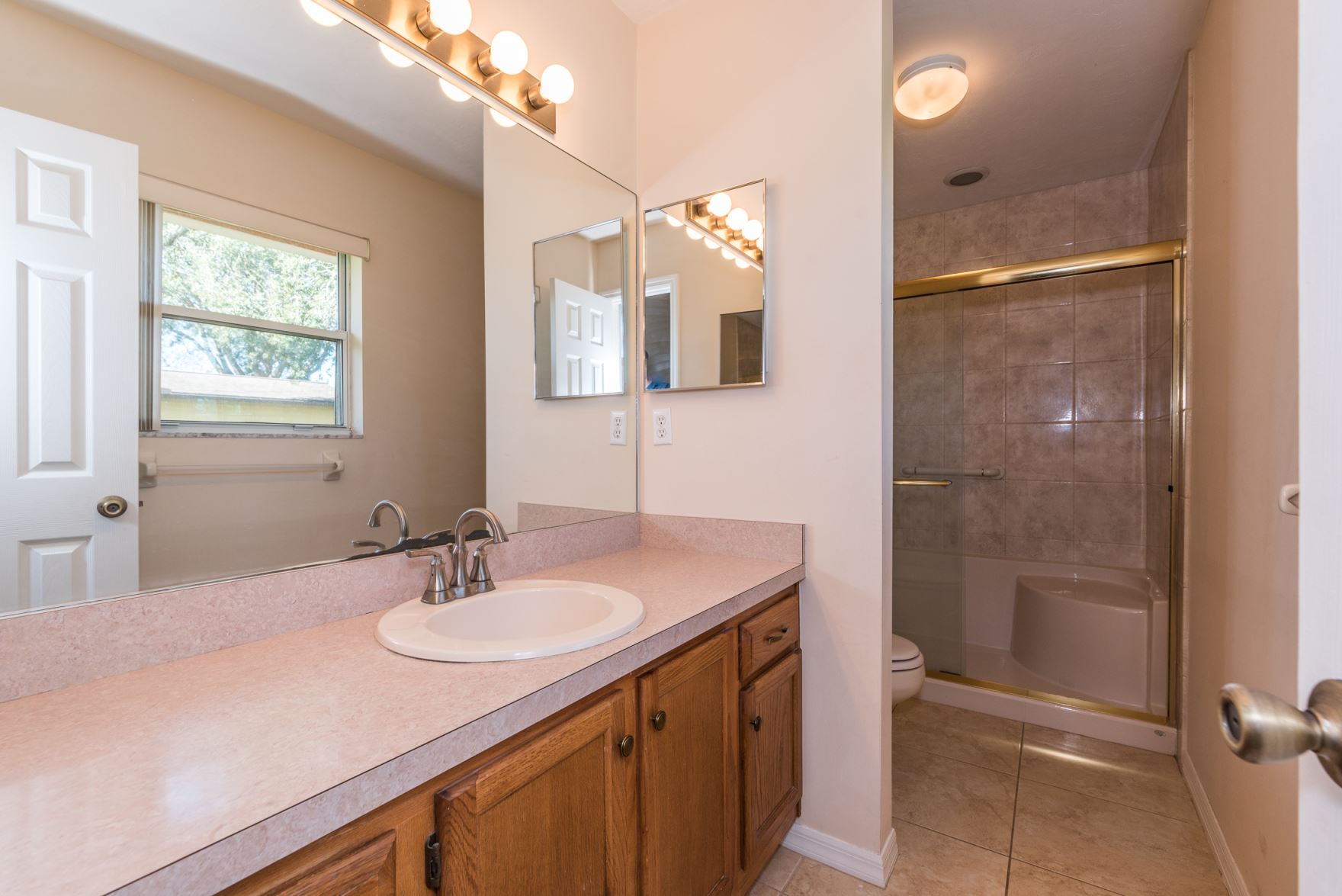 The open plan has continuously tiled floors in the living areas and the vaulted ceiling with skylights makes the space feel even larger. The wood-burning fireplace is waiting for cool evenings and the media niche is adjacent so you can sit by the fire and watch a movie without moving an inch. Dining alcove holds a full-size table and there’s a breakfast bar separating kitchen from gathering areas. All appliances are recent and there is plenty of work and storage space for meal prep. A handy laundry room adjacent to the kitchen and garage makes multitasking easy. En-suite, the large master is at the back for maximum privacy and there’s a walk-in closet plus big shower in the bathroom. A split plan puts the other two bedrooms and hall bath on the opposite side of the living room.