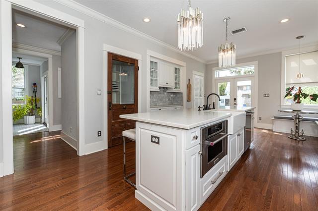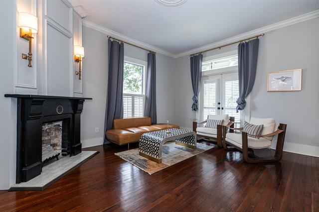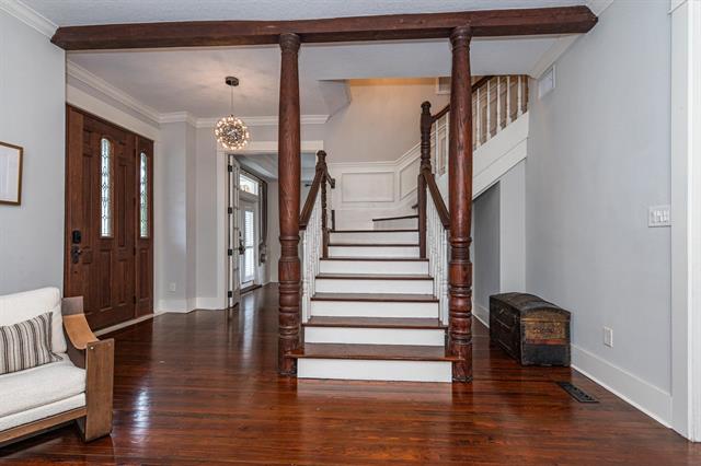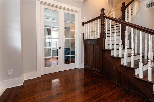 Set on a deep lot, this home offers a gated driveway with dedicated parking. Brick steps lead you to the inviting covered front porch, where a solid antique wood door is framed by dual French doors opening to both the living room and family room.