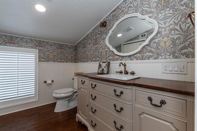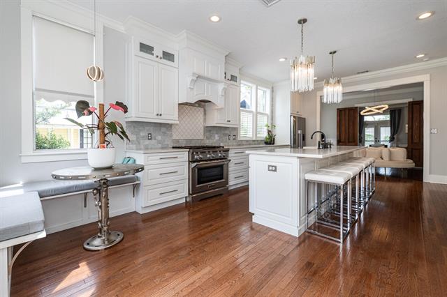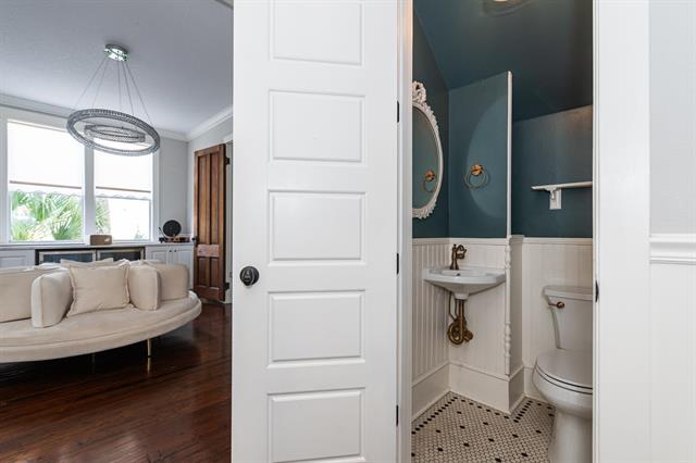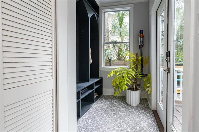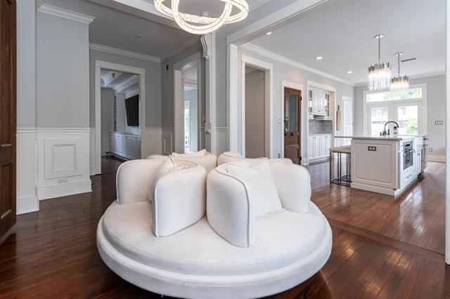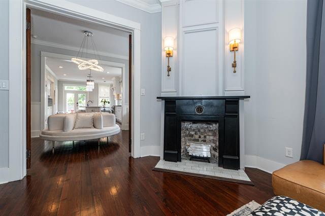 Step into the foyer and be greeted by original heart pine floors and staircase, lovingly preserved during the home’s top-to -bottom renovation in 2019. To your right, a formal sitting room opens to a sunlit dining area, both overlooking the open -concept chef’s kitchen, complete with modern finishes and thoughtful design. On the left, the family room flows easily into the main dining and kitchen spaces. A half bath, storage room, and mudroom entrance complete the first floor.