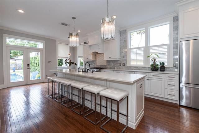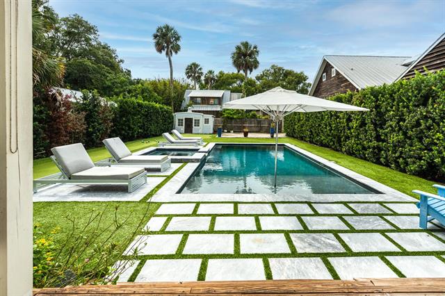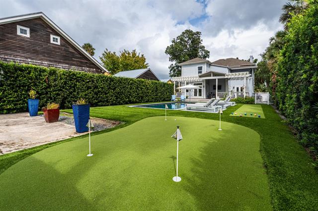 Step outside to your private retreat: a fully fenced backyard designed for both entertaining and leisure. Completed in 2020, the space features low-maintenance artificial turf, a bocce ball court, stone seating areas and a deliciously inviting pool. Practice your short game on the custom putting green, or simply unwind under the Florida sky.