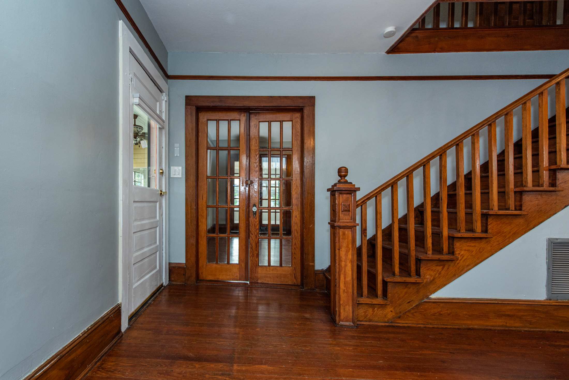 Presiding from the corner of Oneida and Keith St since 1926, this frame vernacular house enjoys the quintessential front porch and a surprisingly modern floor plan. Simple original woodwork is happily intact throughout the house and there are wonderful classic details. Central staircase splits the house with living and dining rooms on the right. Columned opening with built-in cabinets separates the two rooms and owners used the old lath to create a wooden wall. A smart repurposing of materials, it makes for a unique and lovely architectural touch. Dining room opens to the kitchen and family room. The circular flow downstairs makes daily life and entertaining equally easy and there are many places for friends to gather round.