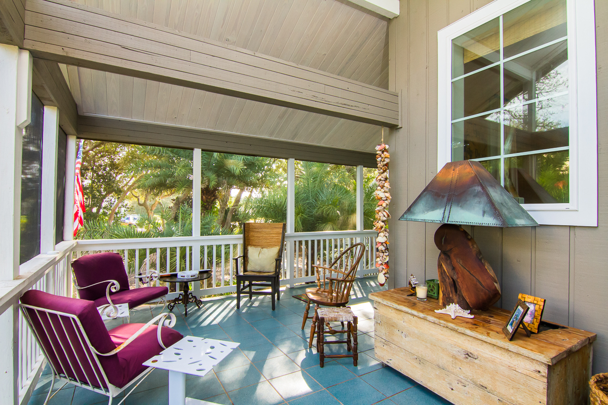 Step inside and see a living room lifted from the pages of Architectural Digest – beamed vaulted ceiling, a colorful fireplace bedecked with gifts from the sea, diffused light and a most welcome place to entertain. Open the French doors to the porch and invite the breeze inside.