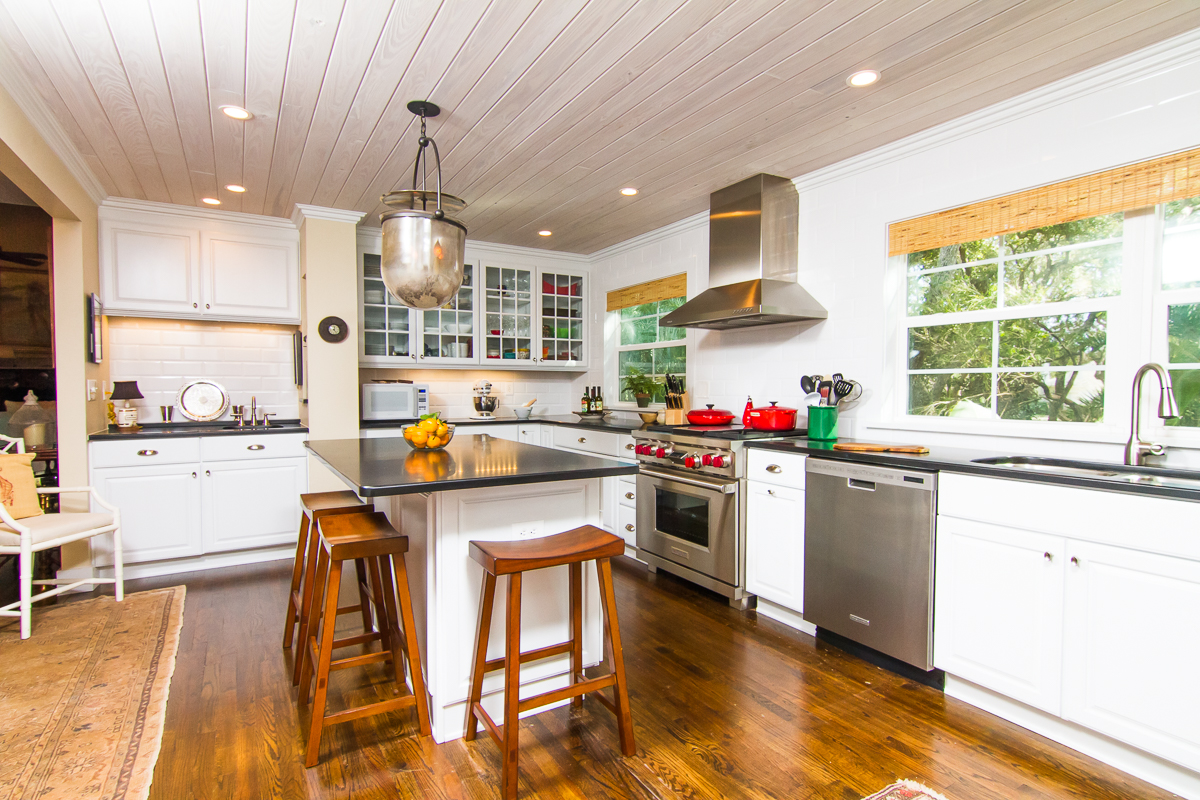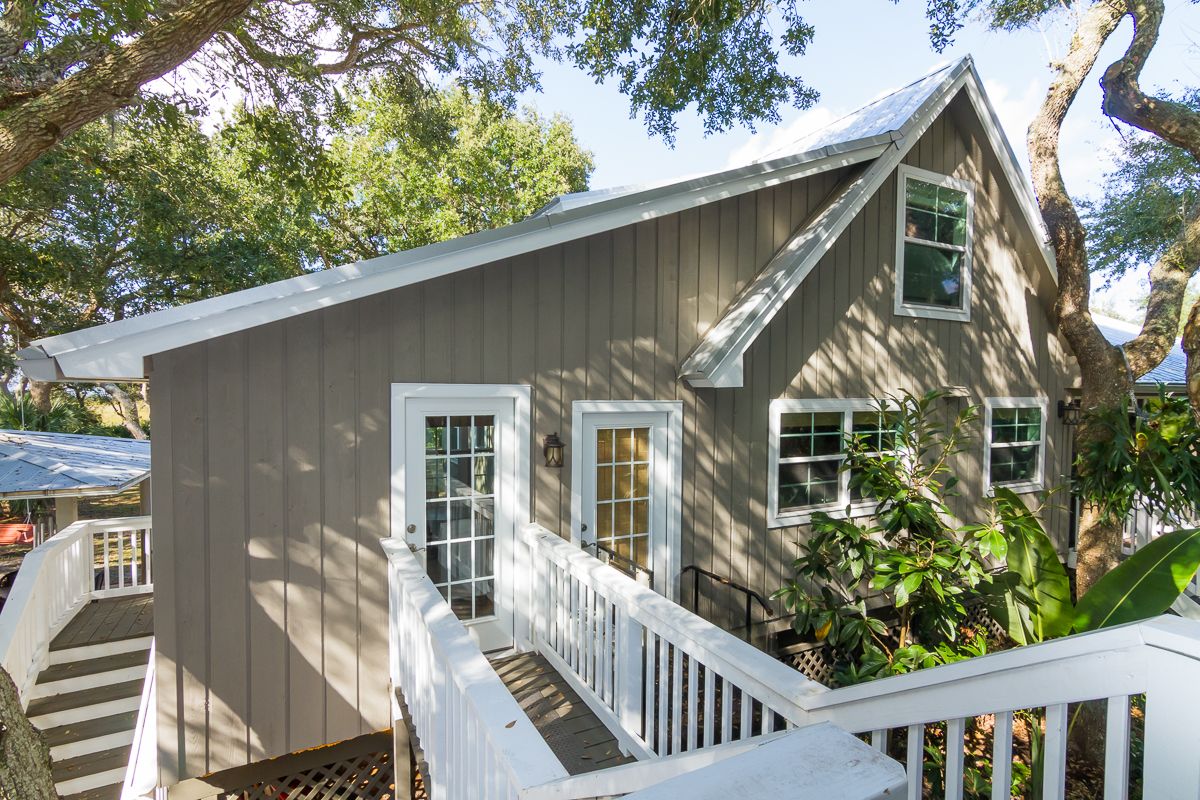 With equal parts of sunshine and welcome shade, the 1.15 acre property offers a main house (2,200SF) clad in classic Florida vernacular and a 2-story guest house (1,278SF) connected by a raised catwalk and panoramic vistas all around you. Come up the wide stairway and onto the 630SF wraparound porch overlooking marsh and oak trees. An outdoor living room most of the year, you’ll spend many happy hours out here.