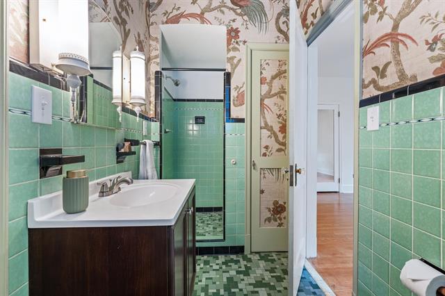 The Art Deco-inspired bathrooms are true showpieces, featuring bold vintage tilework and rich period colors that capture the glamour and craftsmanship of the era. Three spacious bedrooms provide peaceful retreats, each offering comfortable proportions and natural light.
