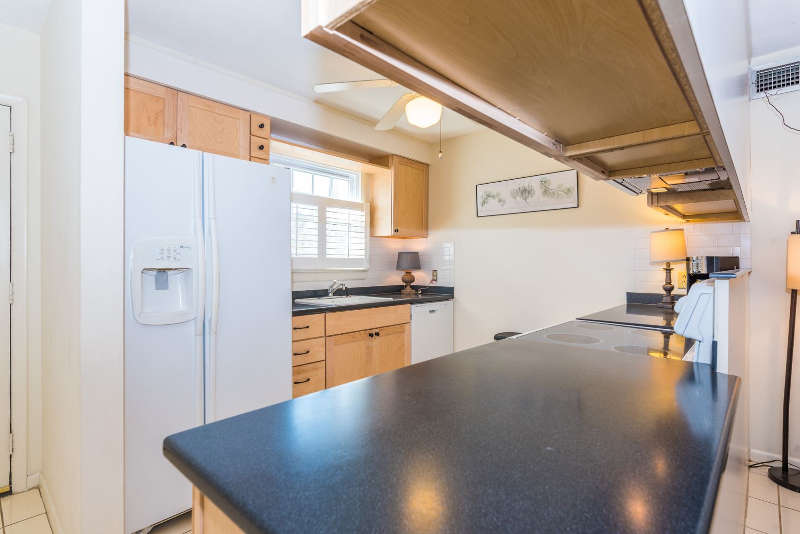 The kitchen is on your left once you enter through the covered portico. A recent dishwasher leak prompted a remodel so cabinets are new. Galley-style, there’s room to host family and friends (they’ll be over when they learn where you live!). Living and dining are one open space leading out to covered patio. Catch the ICW breeze while enjoying your shady outdoor patio. Measuring 28′ x 6′, it’s a very private spot so you can have coffee in your pajamas while you watch the water birds search for seafood snacks. Two comfortable bedrooms flank the hall bath which has had some recent updates too. Just steps from your patio is the community pool overlooking the waterway. Get your daily exercise and dose of Vitamin D out here. Condo laundry facilities are on the other end of the B Building but a number of units have installed stackables or single-units in their individual flats.